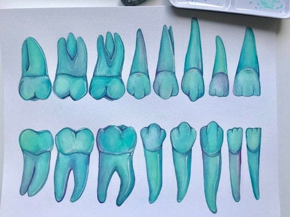 Teal Teeth 8x10 Original Watercolor Painting Etsy